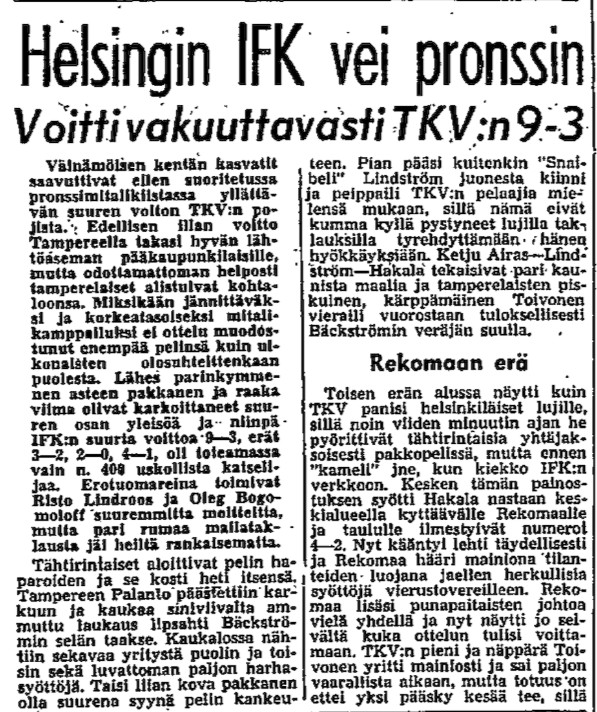| 8.2.1955 | HIFK | KyPa | 12-3 | - | |