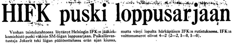 | 11.3.1976 | Jokerit | HIFK | 2-4 | 8634 |
