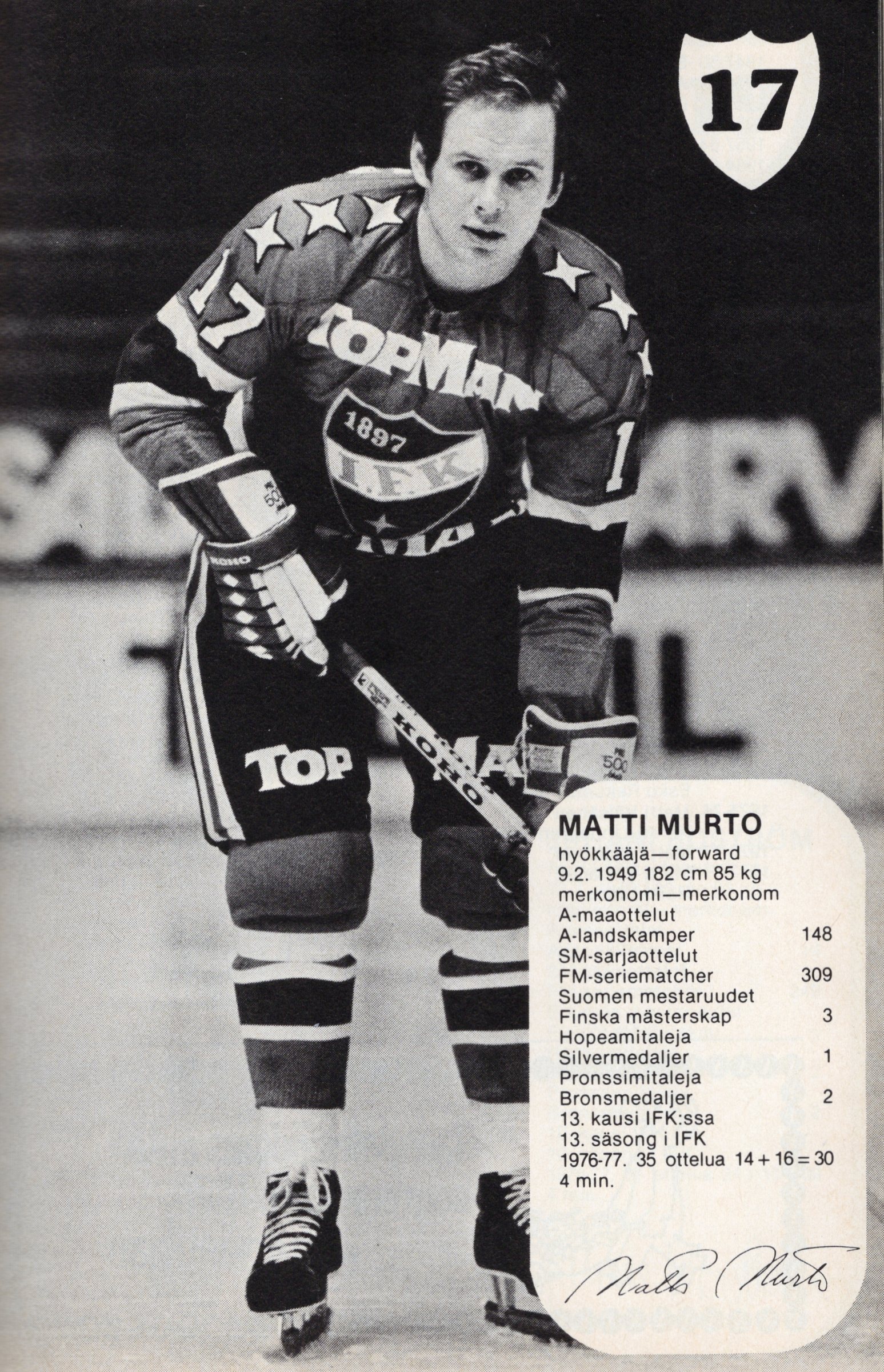 Keskushyökkääjänä pelannut Matti ”Murtsi” Murto voitti HIFK:ssa viisi Suomen mestaruutta ja oli koko uransa ajan yksi joukkueen keskeisistä pelaajista. Murto oli pelaaja, jonka ympärille ryhmä joka kaudella muodostui ja stadilaissyntyinen hengenluoja, joka johti joukkuetta kaukalossa omalla esimerkillään. Murto oli kentällä älykäs ja luotettava pelaaja, ja häntä arvostettiin varauksettomasti myös vastustajien keskuudessa.